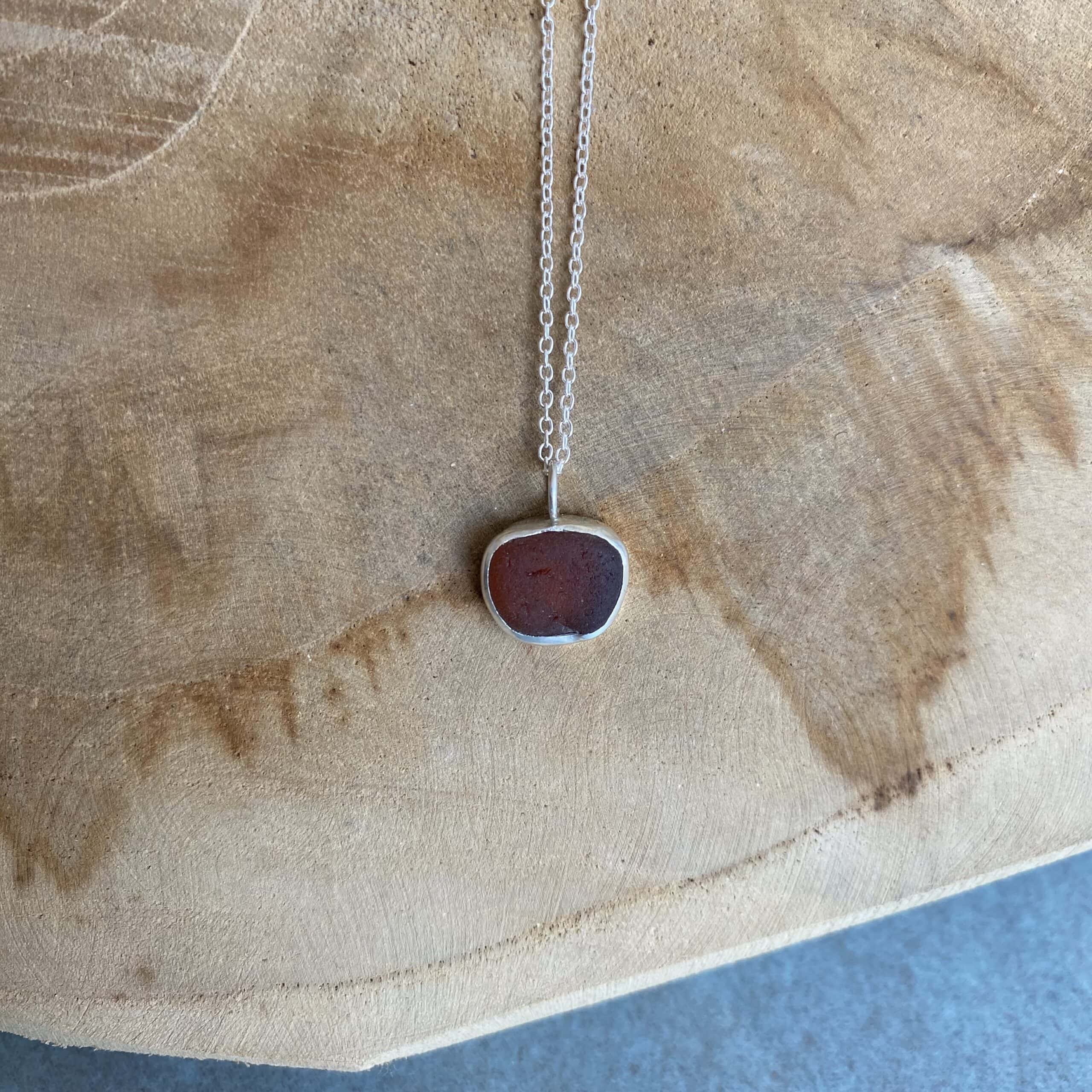 925 zilveren ketting met donkerbruin seaglass.